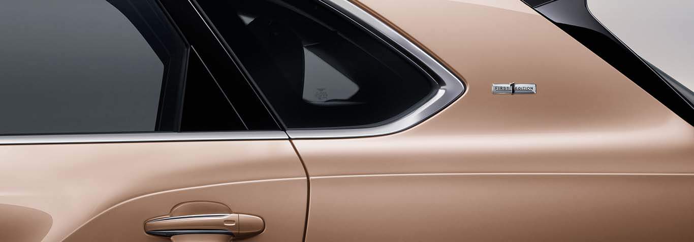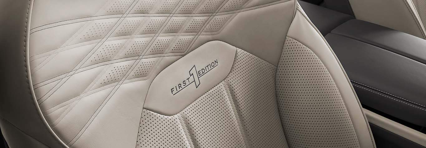 エクステリアには、「First Edition」バッジが装着され、特別な1台であることを示しています。このモチーフはインテリアでもフェイシアパネル*の「First Edition」バッジやシートバックの「First Edition」刺繍として採用されています。専用のFirst Editionコントラストステッチがシートを彩り、ウッドパネルの選択肢によってはキラリと光るメタルオーバーレイをフロントフェイシアパネルと前後ドアのウェストレールに合わせることが可能です**。