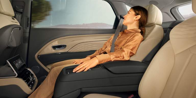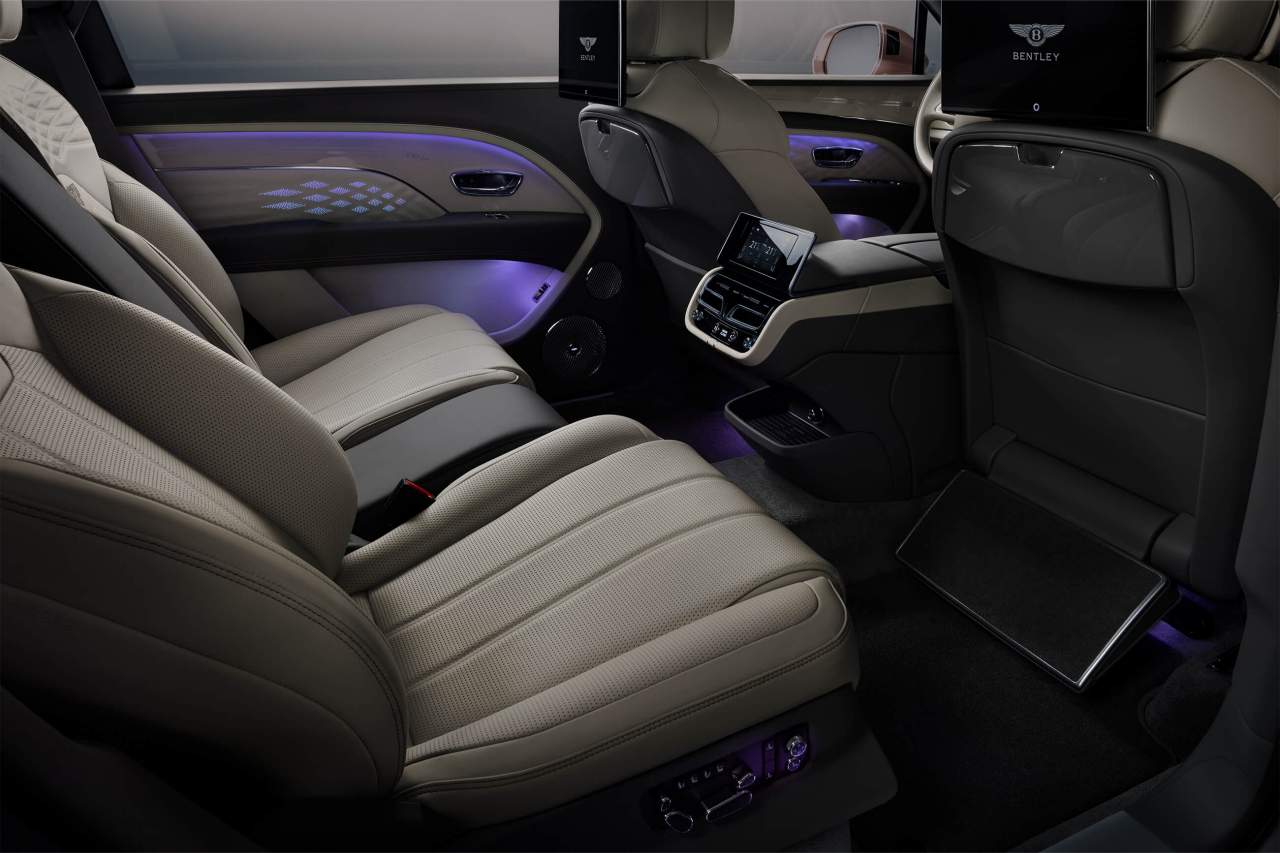 新型ベンテイガEWB アズールは、乗員のウェルネスを高める革新的な機能をいくつも備えており、快適性という概念に新たなスタンダードを設けています。リアシートの乗員に対しては、驚くべきクラフト技術とデザインを融合させた広大なスペースを提供しています。一方、ドライバーに対しては、ベントレーの最新パワートレインと最先端のシャシー システム、運転支援機能を組み合わせて提供することで、日常のドライビングをより一層楽なものにしています。