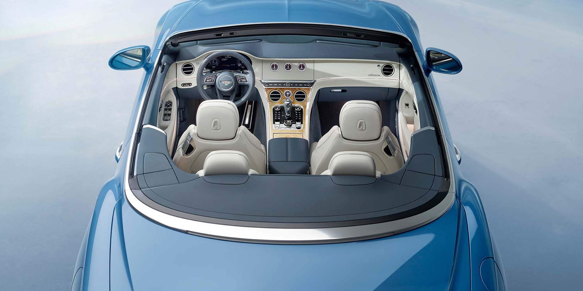 コンチネンタルGTC アズールは、電気モーターと4.0リッターV8ターボエンジンを組み合わせたハイパフォーマンス ハイブリッド パワートレインを搭載し、最高出力680 PS、最大トルク930 Nmを発生させます。これにより、0-100m/h加速は3.9秒、最高速度は270km/hに達します。