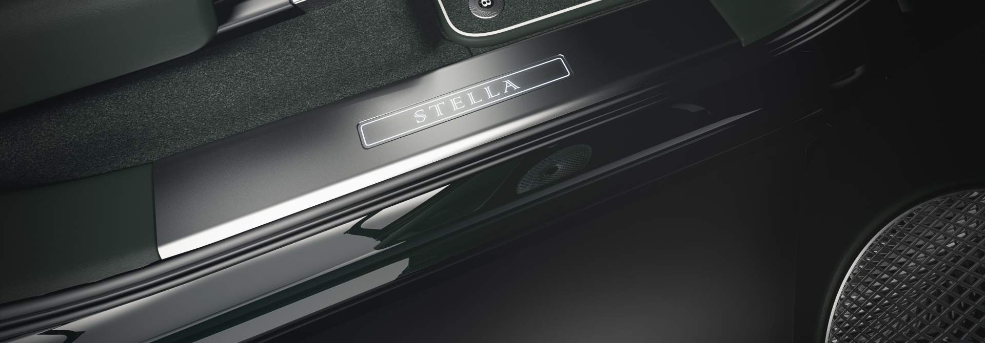 ベントレーの標準オプションとしてご用意しているインナートレッドプレートのパーソナライゼーションに加え、マリナーのパーソナライゼーションをご利用いただくことで、トレッドプレートにロゴや画像、テキストなどを自由に組み合わせてデザインすることができます。その結果、乗降する際にドアを開けたときにだけ見える、さりげないパーソナライゼーションとなります。