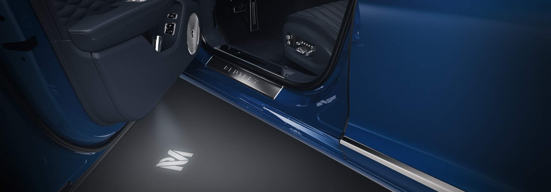 マリナーのパーソナライゼーションは、トレッドプレートの刻印やエンブレムの刺繍といった、ひと目見てわかるものばかりではありません。マリナーパーソナライズドウェルカムランプをご利用いただくと、暗闇でドアを開けるたびに地面に映し出されるお客様の名前、画像、エンブレムなどが見られるようになります。車に乗り込む前に路面を照らすこのランプは、ラグジュアリーさを演出する装備でありながら、実用的な機能でもあります。夜間に愛車が光で出迎えてくれる、そんな素晴らしい演出を検討してみてはいかがでしょうか。
