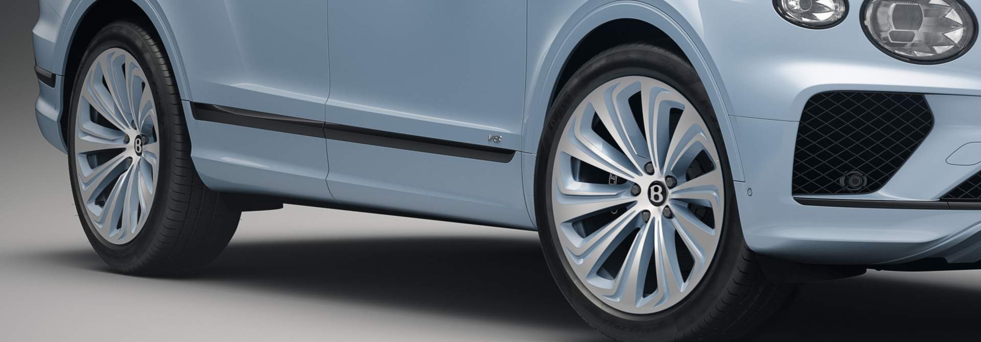 どのベントレーにも、魅力的なデザインと仕上げのホイールをご用意しています。特にコンチネンタルGTシリーズに採用されている、堂々たる佇まいの22インチ5オープンスポークホイールは、最も印象的なホイールの1つといえるでしょう。しかし、エクステリアのビスポークの表現において、お客様の車両のボディカラーに合わせたペイントを施したホイールに勝るものはありません。シングルカラー仕上げ(ソリッド、サテン、パール、メタリックから選択可)、またはデュオトーン仕上げのどちらにも対応可能です。ホイールはベントレーのボディカラーやインテリアのレザーカラー、またはお客様が指定するパーソナルカラーにマッチさせることもできます。