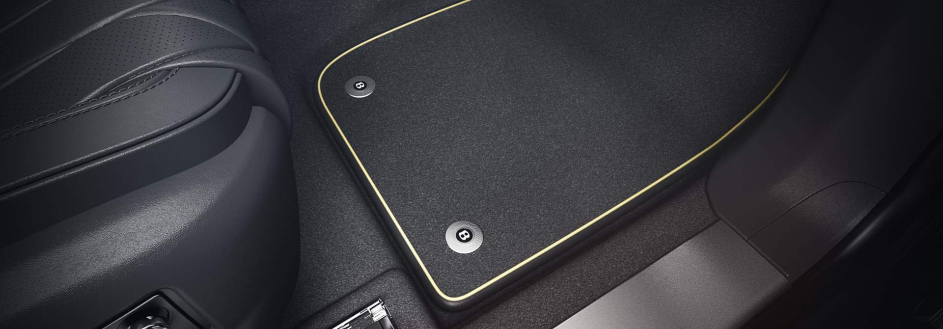 ラグジュアリーなディープパイルフロアマットは、車内の足元に快適さとデカダンスの雰囲気をもたらします。クロームでBentleyの「B」マークを施したリテンションキャップによってしっかりと固定され、コントラストカラーのマイクロパイピングの縁取りで仕上げることができます。マイクロパイピングのカラーは、標準のレザーカラーまたはオプションのレザーカラーからお選びいただけます。