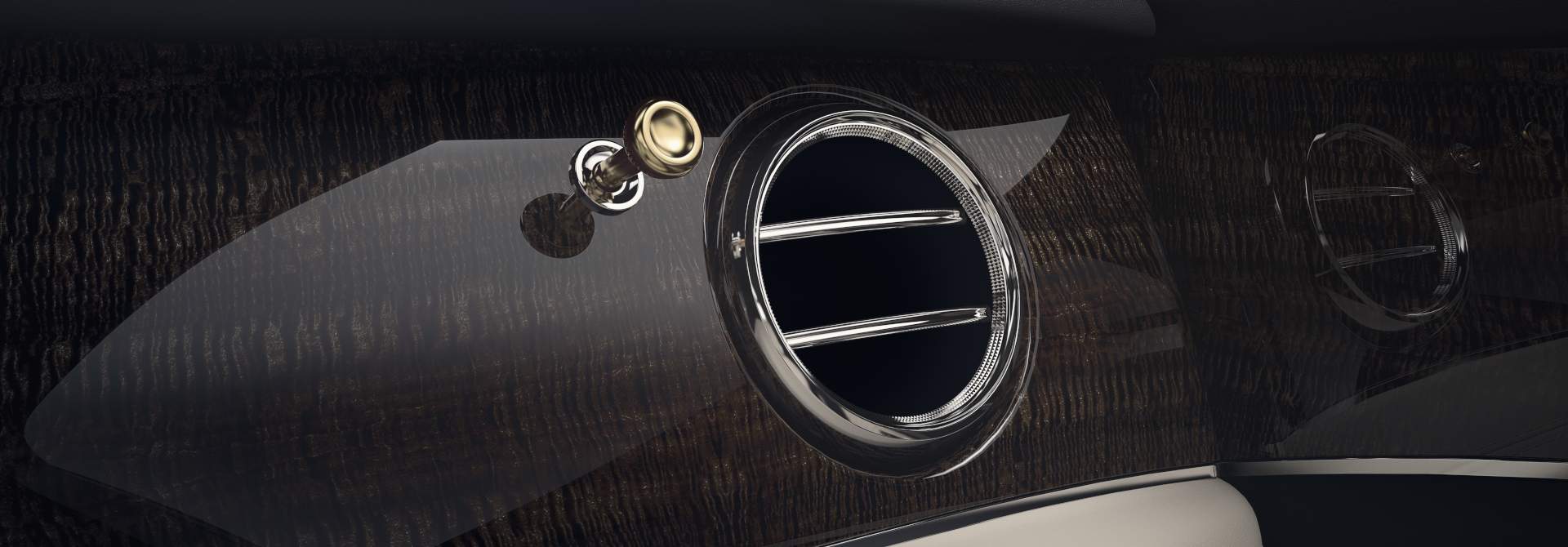 本物のゴールドの輝きほど、愛車を華やかに彩ってくれるものはありません。マリナーが手掛けるビスポークのゴールドオルガンストップは、ベントレーのインテリアに貴金属の輝きを添えます。通常のエアベントコントロールはステンレススチール製ですが、このオプションではきらめく18金メッキが施されたエアベントコントロールに変更されます。1920年代のサーキットを席巻したベントレーボーイズを彷彿とさせるデザインのゴールドオルガンストップは、ベントレーのキャビンにエレガントな雰囲気をもたらします。